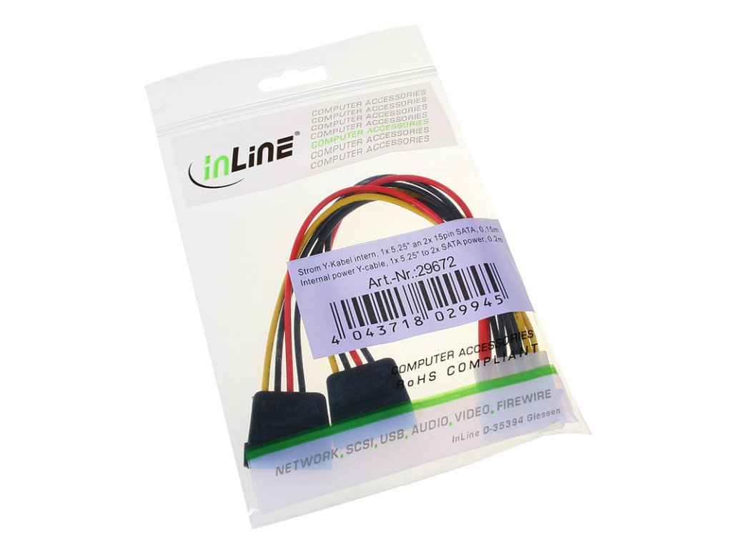 Napájací Y-kábel InLine 4-pin Molex na 2x SATA napájanie - 0,15 m