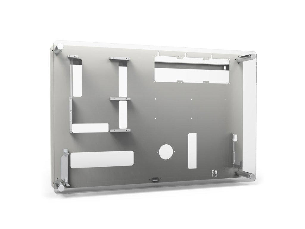 Skriňa je ideálna pre výkonné procesory a zostavy s viacerými grafickými procesormi a je určená pre základné dosky ATX. Ponúka tiež nastaviteľnú podporu pre rôzne špičkové komponenty. Vitrína je prehľadne usporiadaná v prierezoch, aby sa zabránilo neporiadku v kábloch. V zadnej časti skrine sa nachádza priestor pre rozbočovače USB alebo úložisko káblov. Je tu aj priestor pre pevné disky a mechaniky: každýjedna 2,5-palcová a jedna 3,5-palcová jednotka je možné nainštalovať na zadnú stranu zásobníka základnej dosky.CNC obrábaný a laserom vyrezávaný hliníkový rám bol pieskovaný pre hladký povrch, zatiaľ čopredný panel z tvrdeného skla s hrúbkou 4 mm profesionálne prezentuje všetok váš herný hardvér. S rozmermi 540 x 820 x 160 mm je táto skrinka vaším plátnom, ktoré čaká, až mu vdýchnete život.