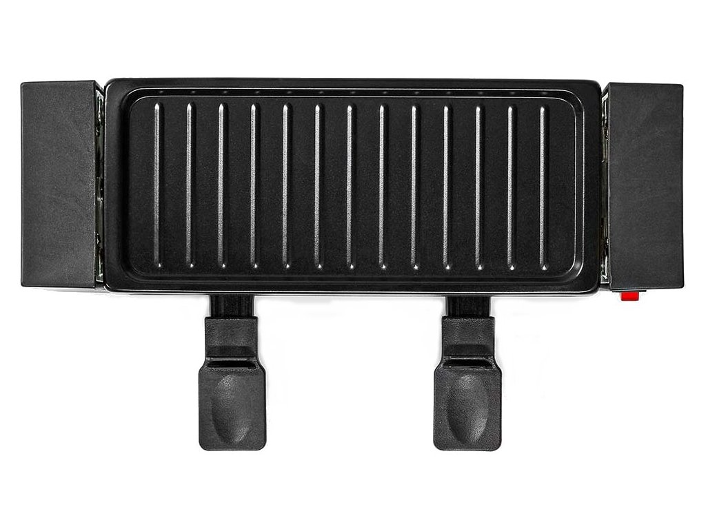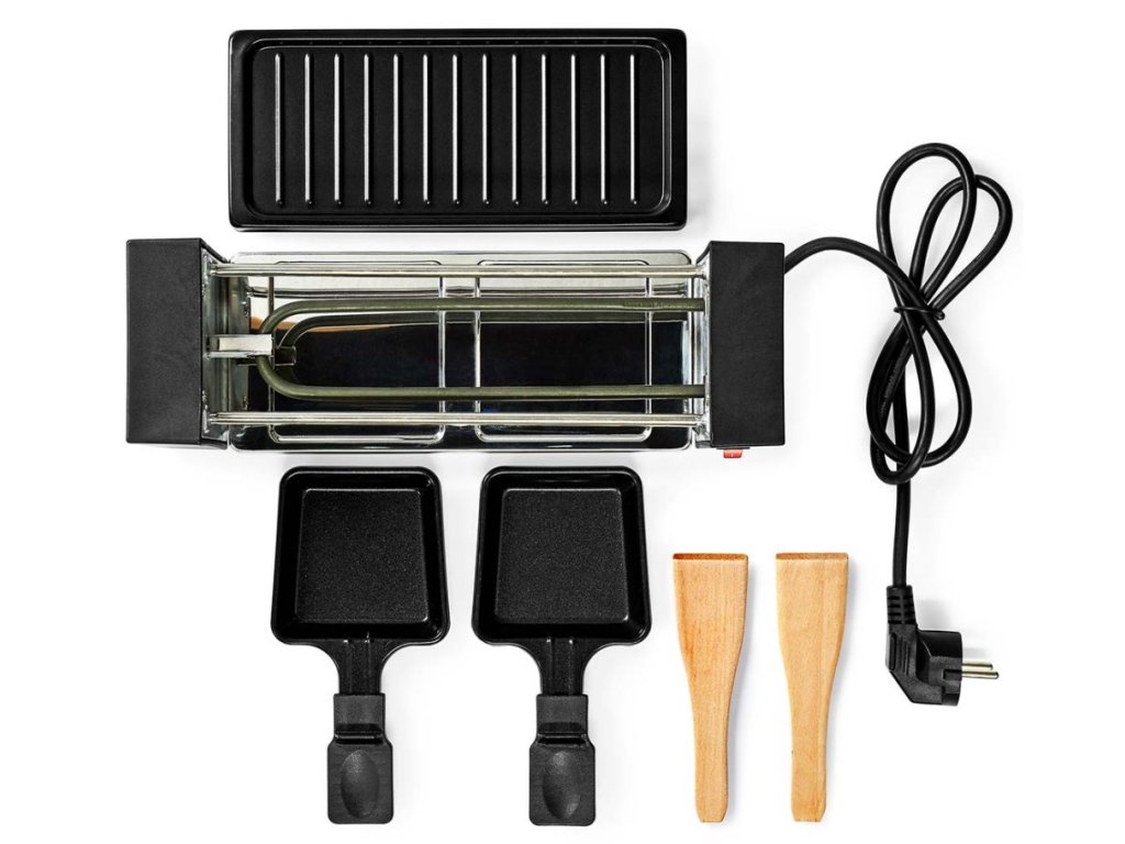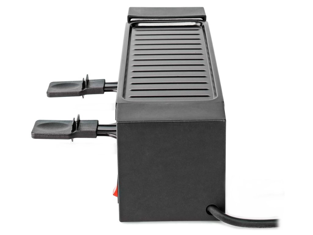 NEDIS gurmánský raclette gril/ obdélníkový/ grilovací deska 23 x 10 cm/ pro 2 osoby/ špachtle/ nepřilnavý povrch/ černý