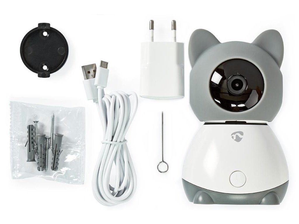NEDIS IP kamera/ Wi-Fi/ vnitřní/ 1080p/ Micro SD/ Cloud/ snímač pohybu/ náklon/ noční vidění/ Android/ iOS/ šedo-bílá