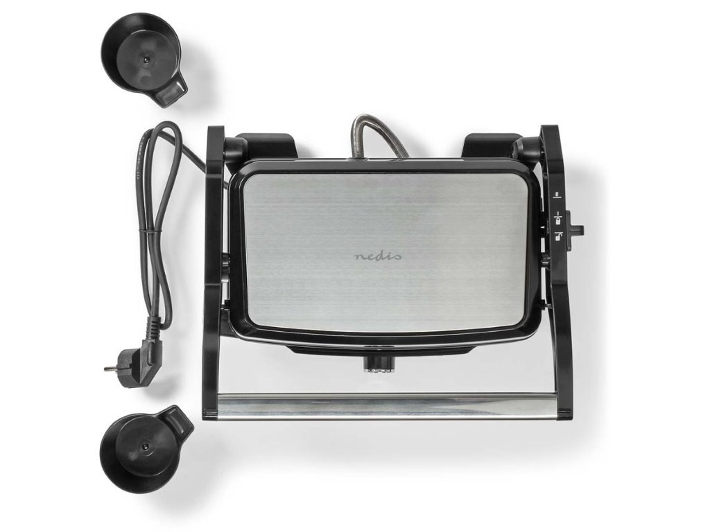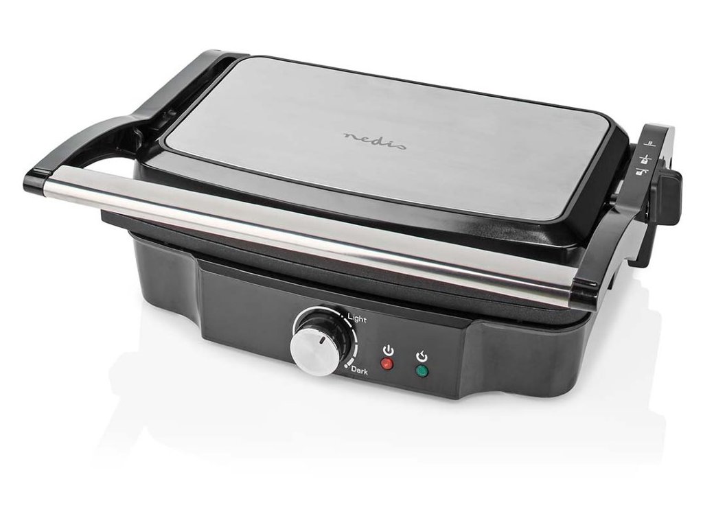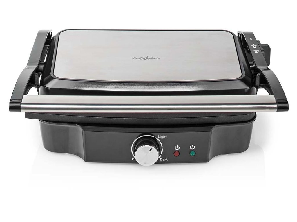 NEDIS kontaktní gril/ výkon 1500 W/ velikost desky 27,8 x 17 cm/ nerezová ocel/plast/ černo-stříbrný