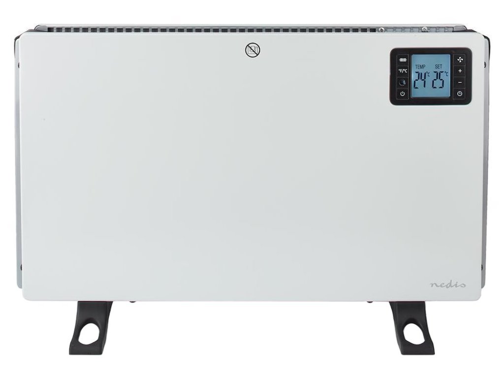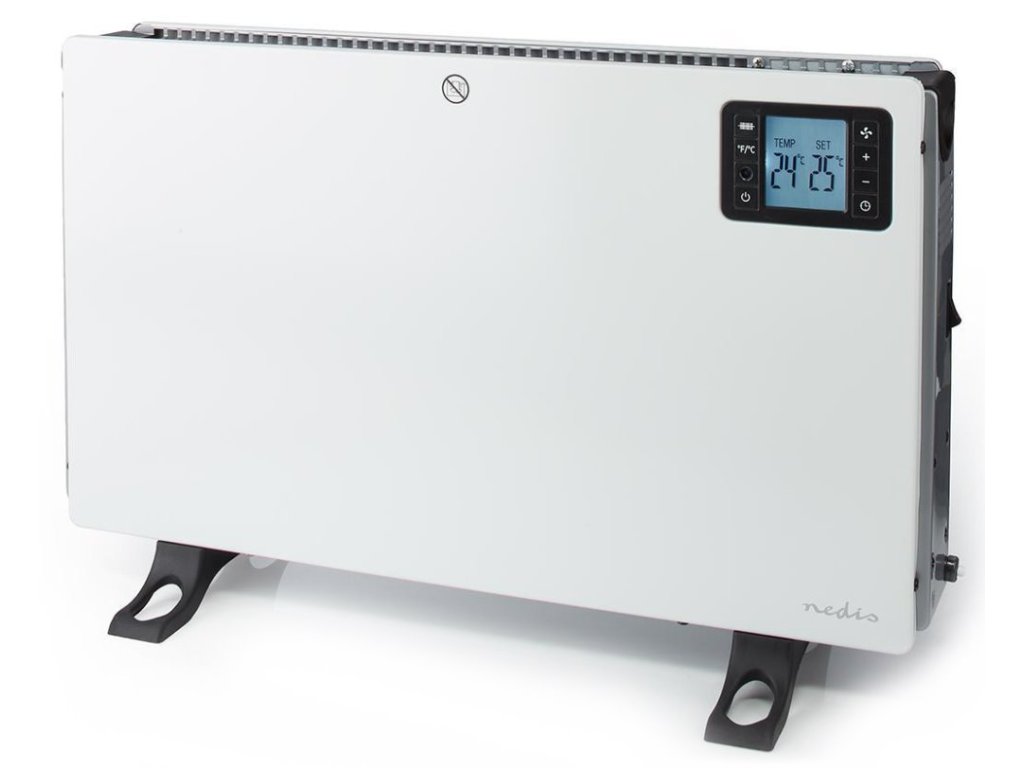 NEDIS konvekční ohřívač/ termostat/ 3 nastavení/ display/ časovač/ DO včetně baterie CR2032/ výkon 2000 W/ kov/ bílý