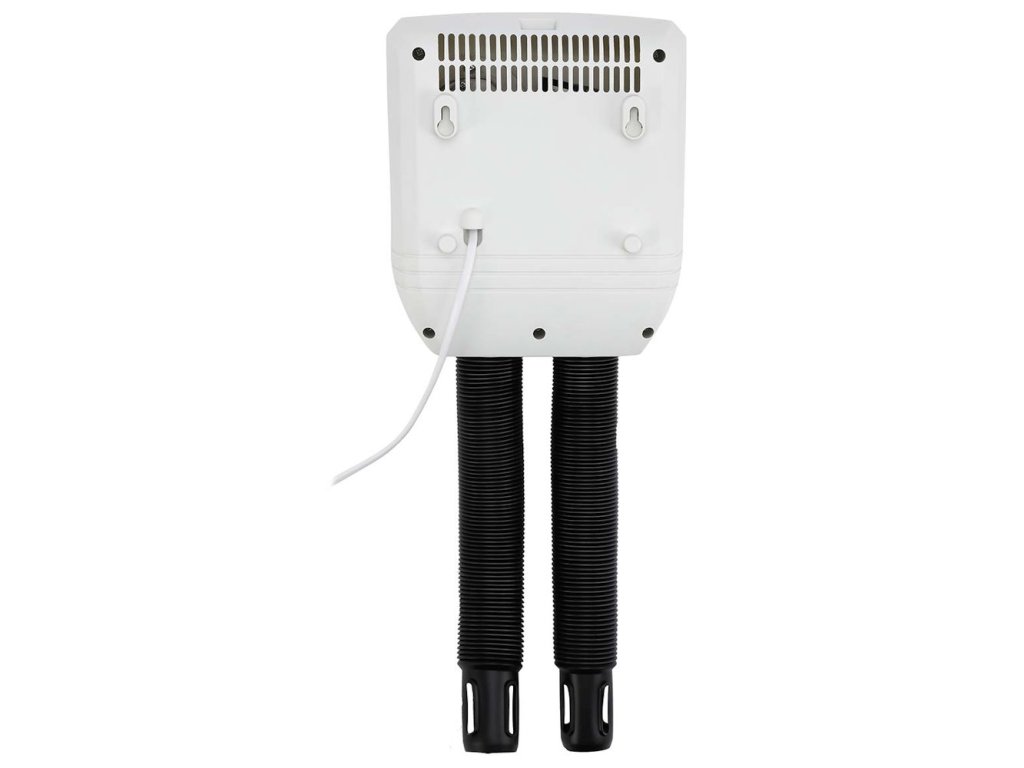 Vysoušeč obuvi o výkonu 250 W s nástěnným držákem je ideální k sušení jednoho páru vlhkých bot nebo holínek. Vzduch o teplotě až 70 °C proudí současně ze dvou vývodů, rychle tak odstraňuje vlhkost a zabraňuje nepříjemnému zápachu a tvorbě bakterií. Vložte hadici do každé boty nebo holínky, nastavte časovač na požadovaný čas a sušička obuvi se postará o zbytek. Zařízení se po uplynutí nastavené doby automaticky vypne. Zabudovaná ochrana termostatu navíc poskytuje ochranu proti přehřátí.