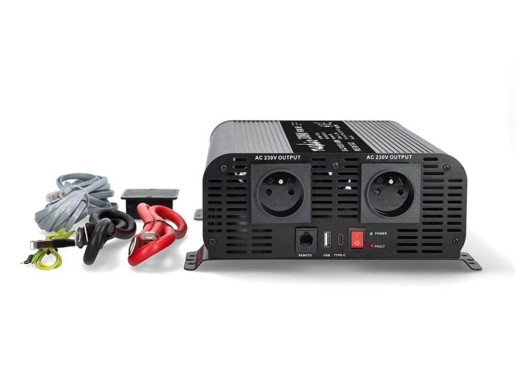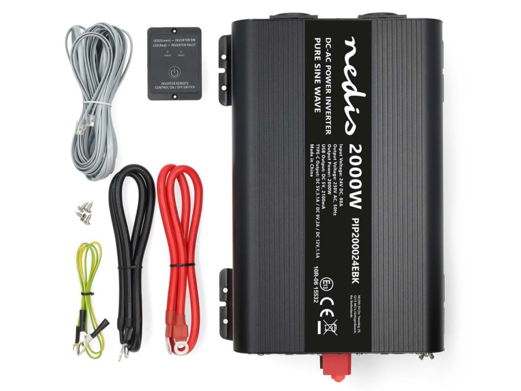 Nedis PIP200024EBKMěnič napětí s výkonem 2000 W (4000 W špička) s čistou sinusoidou je ideální řešení pro napájení citlivé elektroniky napájené střídavým proudem, jako jsou notebooky, herní konzole, audio zařízení atd. Umožňuje napájet dvě zařízení 230 V AC prostřednictvím baterie 24 V DC a je vhodný pro použití v nákladních automobilech, obytných vozech, karavanech i lodích. Měnič je vybaven dvěma napájecími zásuvkami se zemnicím kolíkem (typ E), jedním USB-C portem a jedním USB-A portem pro nabíjení mobilních zařízení. O stabilní napájení se stará inteligentní chladicí ventilátor s řízenou teplotou. Samozřejmostí je ochrana proti přetížení, přehřátí, zkratu a také proti přepólování (pojistka), podpětí či přepětí na vstupu.