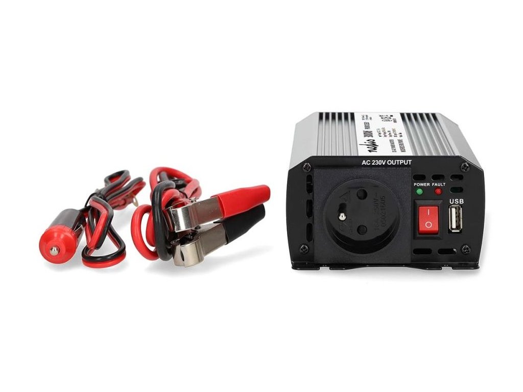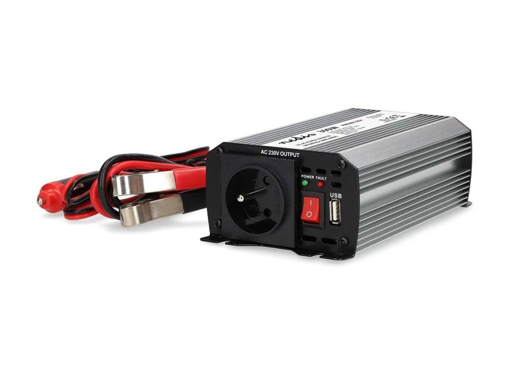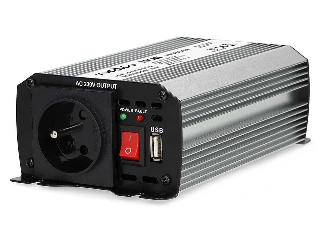 Nedis PIM30012EGYMěnič napětí s výkonem 300 W a modifikovanou sinusoidou je ideální řešení pro napájení nejrůznějších elektrických spotřebičů určených pro síťové napájení, jako například notebooků, chladicích boxů apod. Vstupní napětí měniče je 12 V DC, výstupní napětí 230 V AC a účinnost 85 %. Takto můžete v nákladních automobilech, lodích či obytných vozech používat domácí spotřebiče, aniž byste museli investovat do speciálního vybavení pracujícího s napětím 12 V. Není vhodný pro napájení elektroniky citlivé na tvar vstupního napětí. Měnič je vybaven napájecí zásuvkou se zemnicím kolíkem (typ E) a jedním USB portem s výstupním napětím 5 V DC. Samozřejmostí je ochrana proti přehřátí, přetížení, zkratu, přepólování (pojistka), podpětí a přepětí. Součástí balení jsou kabely pro zapojení do automobilové zásuvky a bateriovými svorkami pro připojení k baterii.