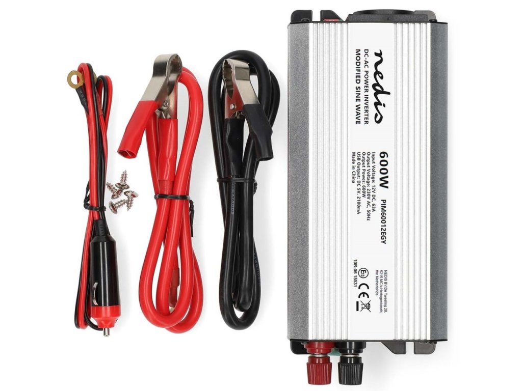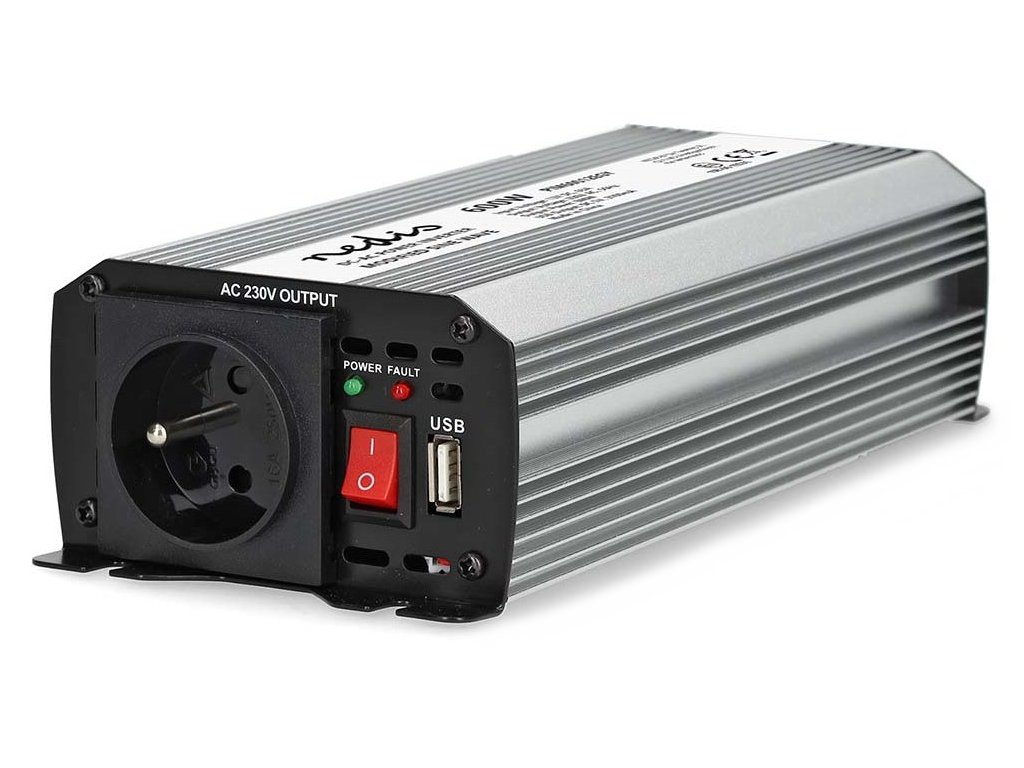 Nedis PIM60012EGYMěnič napětí s výkonem 600 W a modifikovanou sinusoidou je ideální řešení pro napájení nejrůznějších elektrických spotřebičů určených pro síťové napájení, jako například notebooků, chladicích boxů apod. Vstupní napětí měniče je 12 V DC, výstupní napětí 230 V AC a účinnost 85 %. Takto můžete v nákladních automobilech, lodích či obytných vozech používat domácí spotřebiče, aniž byste museli investovat do speciálního vybavení pracujícího s napětím 12 V. Není vhodný pro napájení elektroniky citlivé na tvar vstupního napětí. Měnič je vybaven napájecí zásuvkou se zemnicím kolíkem (typ E) a jedním USB portem s výstupním napětím 5 V DC. Samozřejmostí je ochrana proti přehřátí, přetížení, zkratu, přepólování (pojistka), podpětí a přepětí. Součástí balení jsou kabely pro zapojení do automobilové zásuvky a bateriovými svorkami pro připojení k baterii.