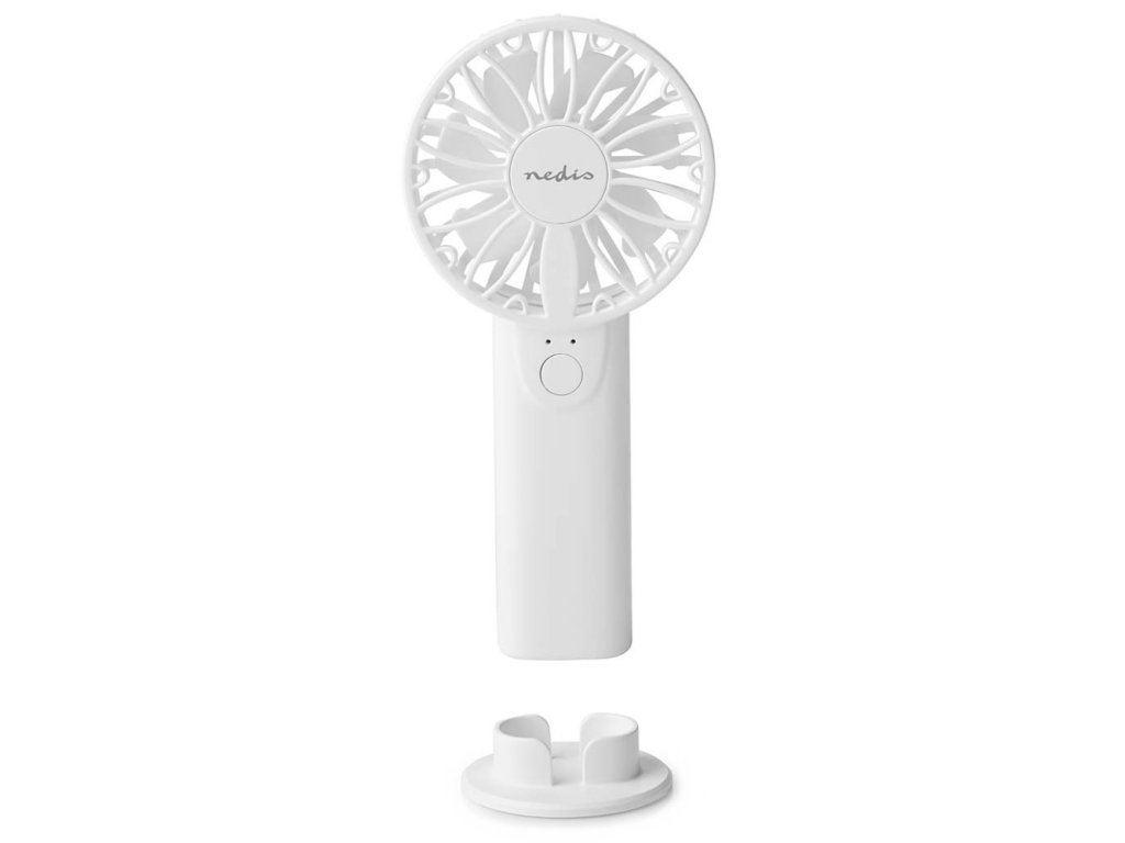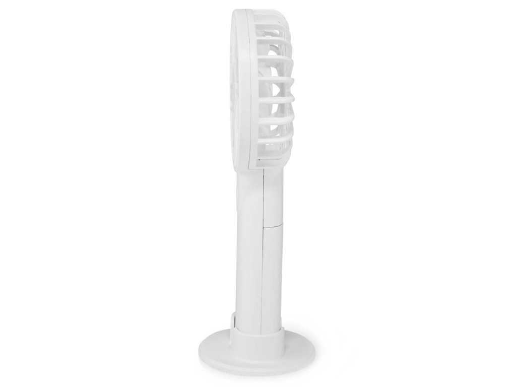 Nedis FNHH1WTDvourychlostní ruční ventilátor s výkonem 0,9 W vás ochladí svěžím vánkem kdekoli. Je skladný a váží pouhých 60 gramů, bez problému si ho tedy můžete vzít do batohu, kabelky nebo i do kapsy. Výborně se hodí na terasu, na pláž nebo do vyhřátého autobusu. Ventilátor má i stojánek, abyste si ho mohli položit na stůl doma nebo v práci. Napájení je realizováno dvěma AA bateriemi.