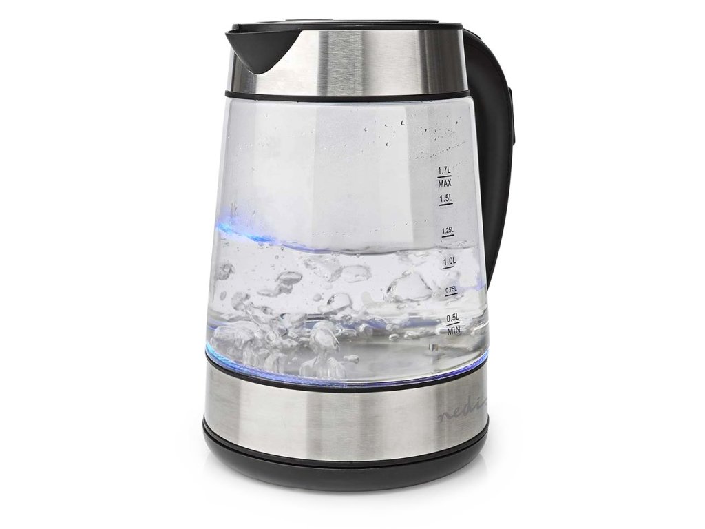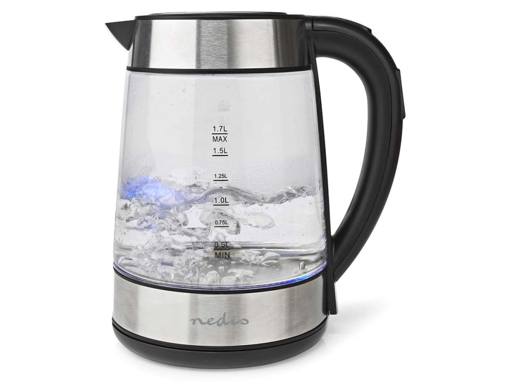 NEDIS rychlovarná konvice KAWK320EGS/ objem 1,7 l/ otáčení o 360°/ spotřeba 2200 W/ sklo/ transparentní
