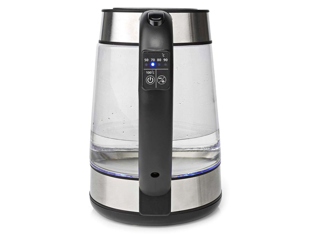 Nedis KAWK320EGSStylová rychlovarná konvice s nerezovými prvky o objemu 1,7 litru. Skryté topné těleso s výkonem 2200 W minimalizuje usazování vodního kamene a v kombinaci s vyjímatelným filtrem zajišťuje velmi snadné čištění konvice. Modrá LED kontrolka signalizuje, když se konvice používá, a skleněná nádoba umožňuje přímo sledovat, kdy se voda vaří. Mezi další přednosti patří otočná 360° základna, 5 stupňů nastavení teploty a ochrana zamezující zapnutí konvice, ve které není dostatek vody.