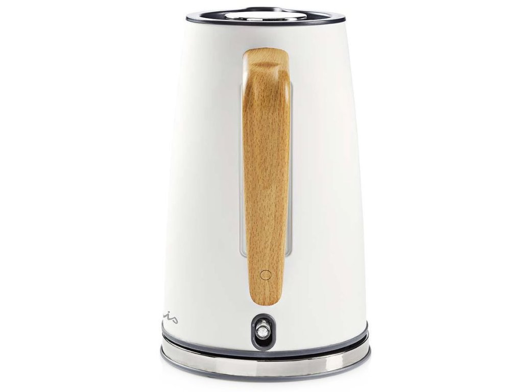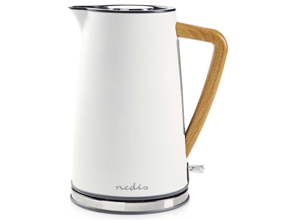 Stylový vzhled zajišťuje kombinace nerezové oceli, dřeva a gumy. Toto spojení nejenom dobře vypadá, ale podporuje také zvýšenou odolnost a jednoduchou omyvatelnost. Topné těleso disponuje výkonem až 2200 W a voda dosáhne velmi rychle bodu varu. Díky ochranné funkci se konvice Nedis KAWK510EWT nezapne, není-li v ní přítomno dost vody. Spolu s vyjímatelným filtrem zabraňuje nadměrnému usazování vodního kamene. Otočná 360stupňová základna podporuje snadnou manipulaci.