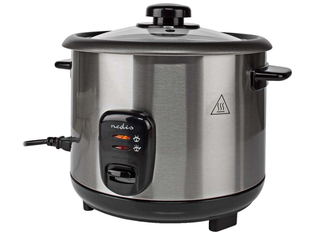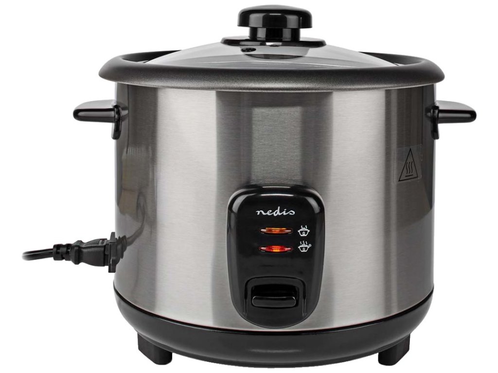 NEDIS rýžovar/ spotřeba 500 W/ objem 1,5 L/ nepřilnavý povrchy/ vyjímatelná miska/ automatické vypnutí/ stříbrný