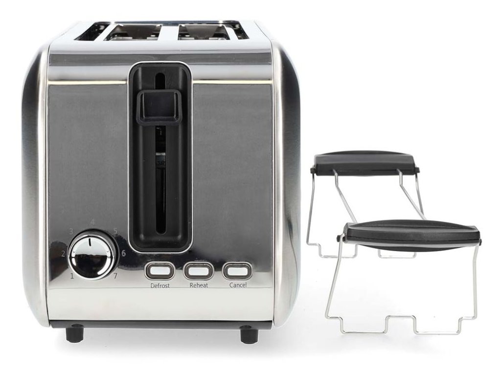 Nechybí ani funkce odmrazování pro pečivo, které jste zrovna vyndali z mrazáku a nechce se vám čekat, nebo opětovného ohřevu, která je vhodná pro zpracování staršího pečiva, například rohlíků. Odnímatelný tácek zachytí jemné drobky a předchází zbytečnému znečištění nebo zanešení při dlouhodobém používání.