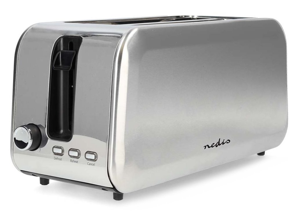 NEDIS topinkovač/ 2 otvory/ 7 úrovní nastavení/ funkce rozmrazování/ hliník/ 1450 W/ stříbrný