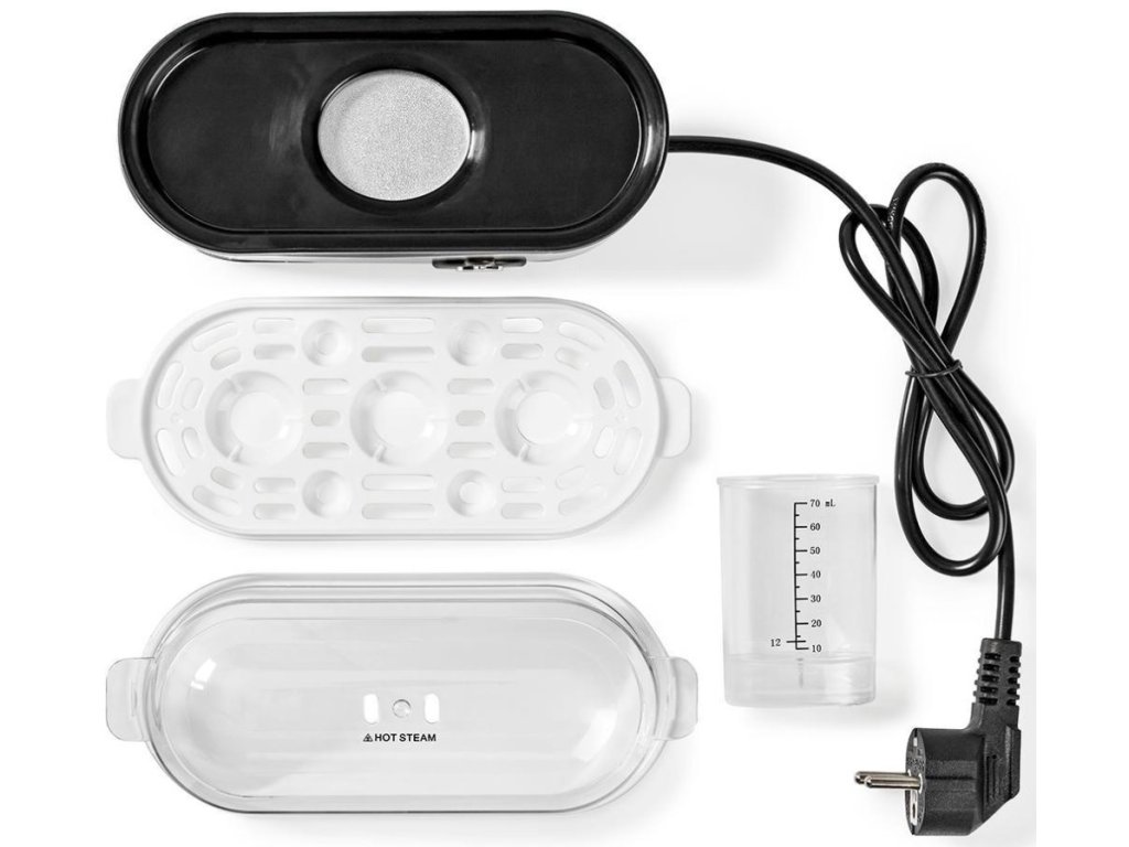 NEDIS vařič vajec/ pro 3 vejce/ odměrka/ hliník/ černý