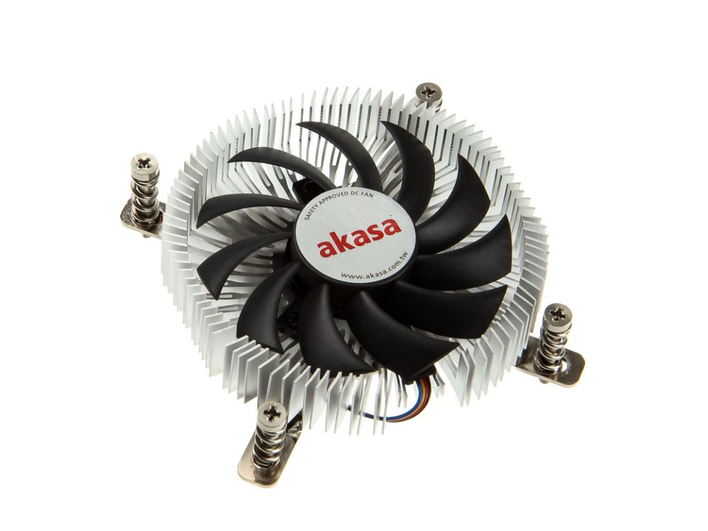 Vďaka HTPC a Mini-ITX sa kompaktné skrinky stávajú opäť prijateľnými a s nimi aj malé, účinné chladiče CPU. Na rozdiel od všeobecného trendu "väčšie je lepšie" tu nie je kľúčovou požiadavkou maximalizácia chladiaceho výkonu. Namiesto toho je cieľom dosiahnuť malé rozmery a predovšetkým minimálnu výšku.CC7129BP01 od spoločnosti Akasa je tiež navrhnutý na princípe kruhového ventilátora s horným výfukom. Chladič je umiestnený a namontovaný priamo na procesore. Na rozdiel od mnohých iných chladičov procesora nie je osadený ortogonálne usporiadaným ventilátorom, ale ventilátor fúka priamo na chladič a procesor.