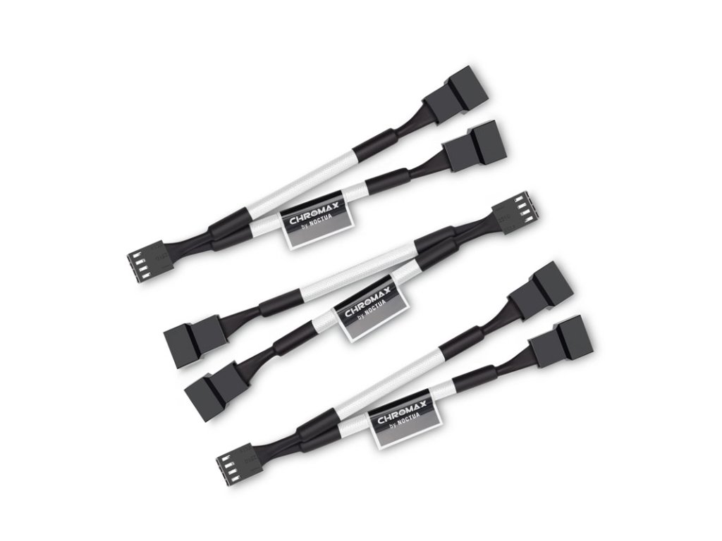 S NA-SYC1 chromax.white spoločnosť Noctua konečne ukazuje svoje farby! So sadou príslušenstva pre ventilátory môžu modderi a dizajnoví nadšenci konečne prispôsobiť svoj počítač požadovanej farbe bez toho, aby utrpela vysoká kvalita produktov Noctua. NA-SYC1 chromax.white je biela sada Y-kabelov pozostávajúca z troch Y-rozbočovacích káblov, ktoré sú kompletne opláštené. Káble NA-YC1 sú kompatibilné s 3-pinovými aj 4-pinovými ventilátormi. Rozdeľovače NA-YC1 možno kombinovať, aby bolo možné prevádzkovať viac ako dva ventilátory na jednom pripojení ventilátora.Technické údaje: