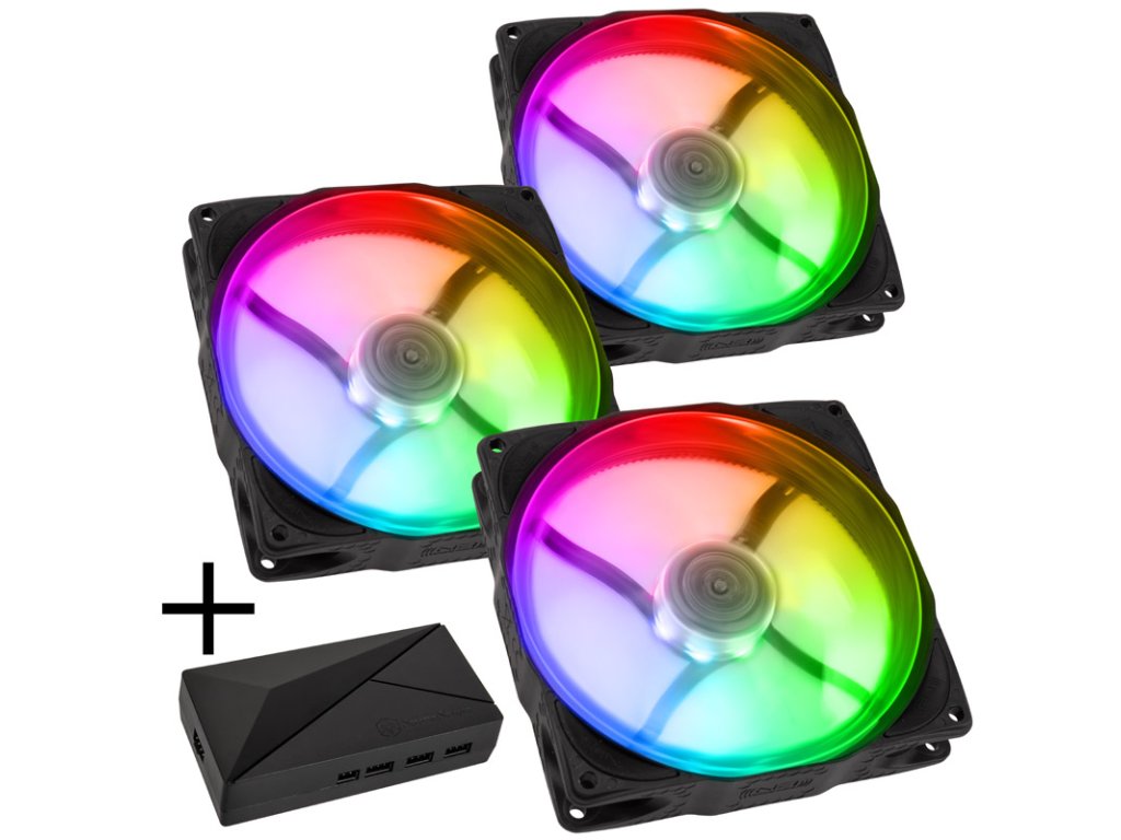 Ventilátory NB-eLoop X od spoločnosti Noiseblocker sú neustále pôsobivé, tiché a účinné. Po prvýkrát spoločnosť Noiseblocker vybavila svoje vysokokvalitné ventilátory aj osvetlením RGB. Tento cenovo výhodný balík obsahuje tri z týchto ventilátorov, ako aj RGB LED rozbočovač, pomocou ktorého možno pripojiť až osem RGB LED komponentov a ovládať ich prostredníctvom základnej dosky.Noiseblocker NB-eLoop X: Bionický ventilátor s diskrétnym osvetlením RGB