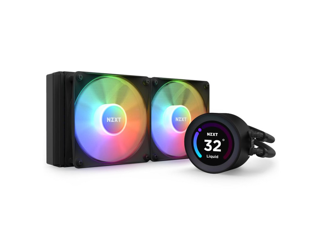 Na 2,36-palcovom (6 cm) štvorcovom displeji LCD s rozlíšením 640 × 640 pixelov, obnovovacou frekvenciou 60 Hz a vysokým jasom môžete pohodlne zobrazovať informácie o stave systému alebo prehrávať vlastné gify. Displej LCD, rýchlosť čerpadla a krivky ventilátora s nulovou hlučnosťou sa ovládajú prostredníctvom vlastného softvéru NZXT CAM.