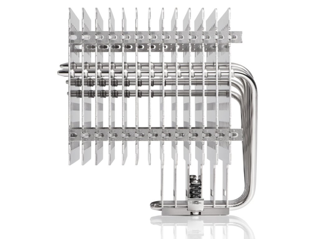 SNH-P1 predstavujeNoctua jeho prvýpasívny chladič CPU. Ten bol od základu vyvinutý pre prevádzku bez ventilátora a ponúka účinné chladenie prostredníctvomprirodzená konvekcia. Celkovo šesť tepelných rúrok odvádza odpadové teplo do mimoriadne hrubých chladiacich rebier s veľkou vzdialenosťou medzi rebrami. SNH-P1 možno použiť na úplne tiché chladenie procesorov s nízkym alebo stredným rozptylom tepla. Plánuje sa aj použitie voliteľného 120 mm ventilátora. To umožňuje vyrovnávanie krátkych špičiek zaťaženia alebo prevádzku v semipasívnych systémoch.Prehľad vlastností Noctua NH-P1: