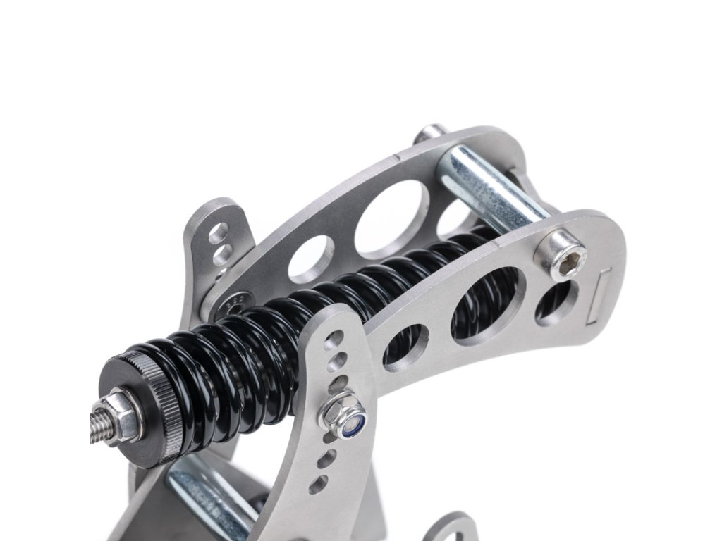 Spojkový pedál má vysokokvalitný hydraulický mechanizmus, ktorý simuluje typickú konkávnu krivku spojky. Okrem toho má pedál nastavenie krivky sily pôsobiacej na pedál, nastaviteľné predpätie pružiny, uhol sklonu pedálu a výšku pedálu, aby vám poskytol čo najrealistickejší zážitok z jazdy.
