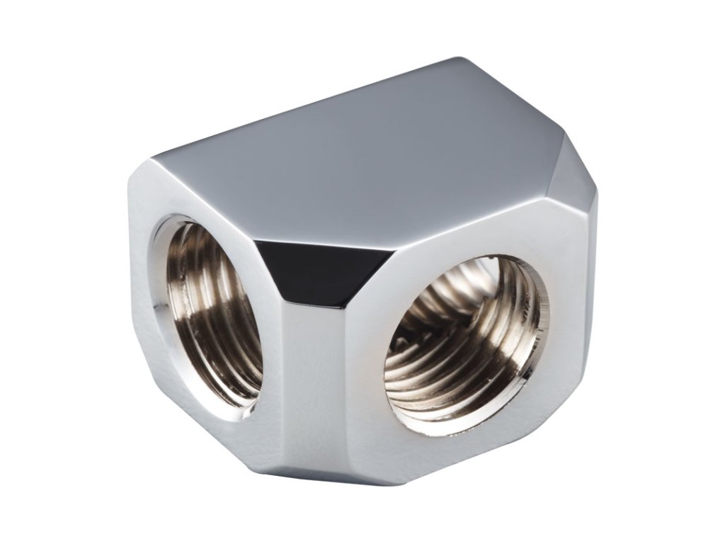 Na pripojenie jednotlivých komponentov systému vodného chladenia je nevyhnutné zvoliť správne prípojky a ich dostatočný počet. Inak sa inštalácia môže rýchlo stať frustrujúcou skúsenosťou, ak montáž zlyhá kvôli nesprávnym alebo príliš malému počtu konektorov a v dôsledku toho sa oneskorí.Toto je pochrómovaný adaptér T-rozdeľovača, ktorý sa dá použiť na rozdelenie alebo zlúčenie prietoku kvapaliny v chladiacom okruhu. Tento adaptér je vybavený celkovo tromi závitmi G1/4 palca (vnútorné), takže sa dá flexibilne používať a inštalovať. V tejto verzii je vyrobený z pochrómovanej mosadze, a preto je obzvlášť vhodný pre nápadné systémy vodného chladenia.