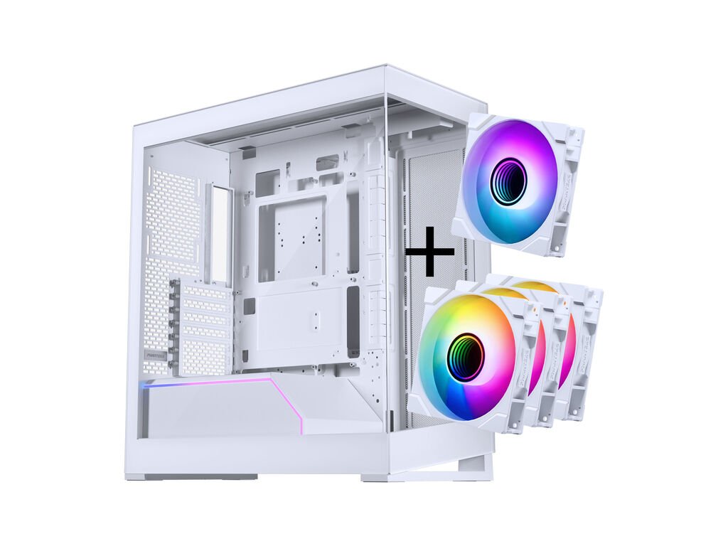 PHANTEKS NV-Series NV5 MK2 ATX skriňa, tvrdené sklo, DRGB - matná biela + 3 balenia M25 Gen2 PWM D-RGB ventilátora s reverznou lopatkou + 1x normálny ventilátor - 120mm