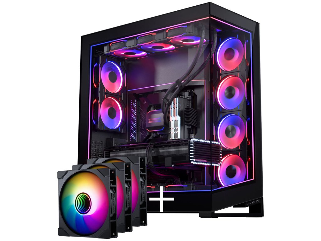 PHANTEKS NV Series NV7 E-ATX skrinka, tvrdené sklo, ARGB - čierna & M25 Gen2 PWM D-RGB ventilátor 3-pack - reverzná lopatka, 140mm + DRGB kit