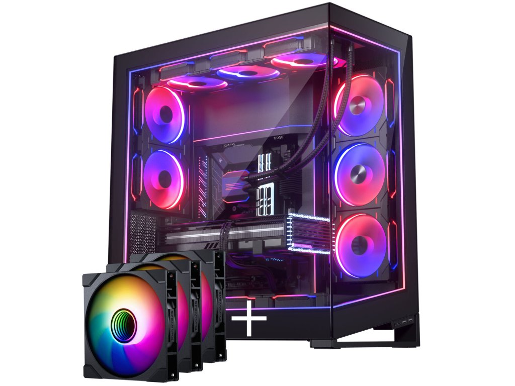 PHANTEKS NV-Series NV9 MK2 PC skriňa, EATX, DRGB, tvrdené sklo - čierna & M25 Gen2 PWM D-RGB ventilátor 3-pack - Reverse Blade, 140mm, čierna + DRG