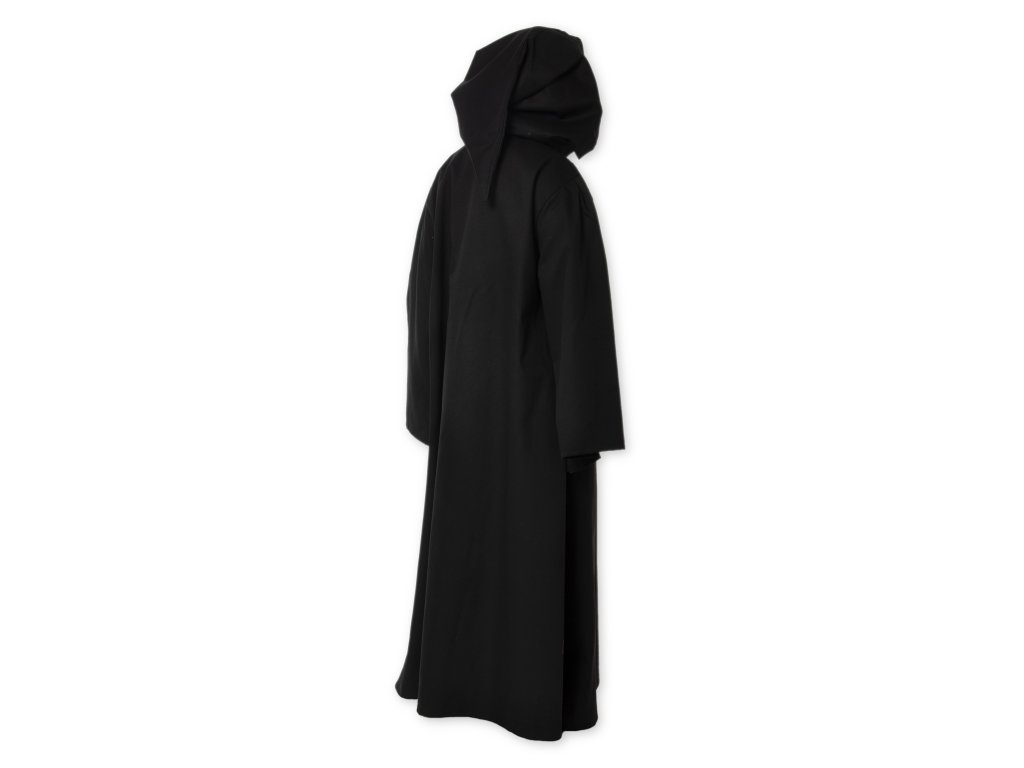 Široký dlouhý plášť z naší dílny. Má široké rukávy a velkou špičatou kapuci, zepředu se zapíná pěti knoflíky, většinou se přepásává páskem, ale je možné jej nosit i volně. V případě zájmu je možné plášť upravit dle Vašich požadavků - jiná barva, materiál, úprava rozměrů a různé další modifikace či doplňky. Stačí nám napsat do poznámky k objednávce. Více o použitém materiálu se dočtete zde: popis materiálů.Diskusia