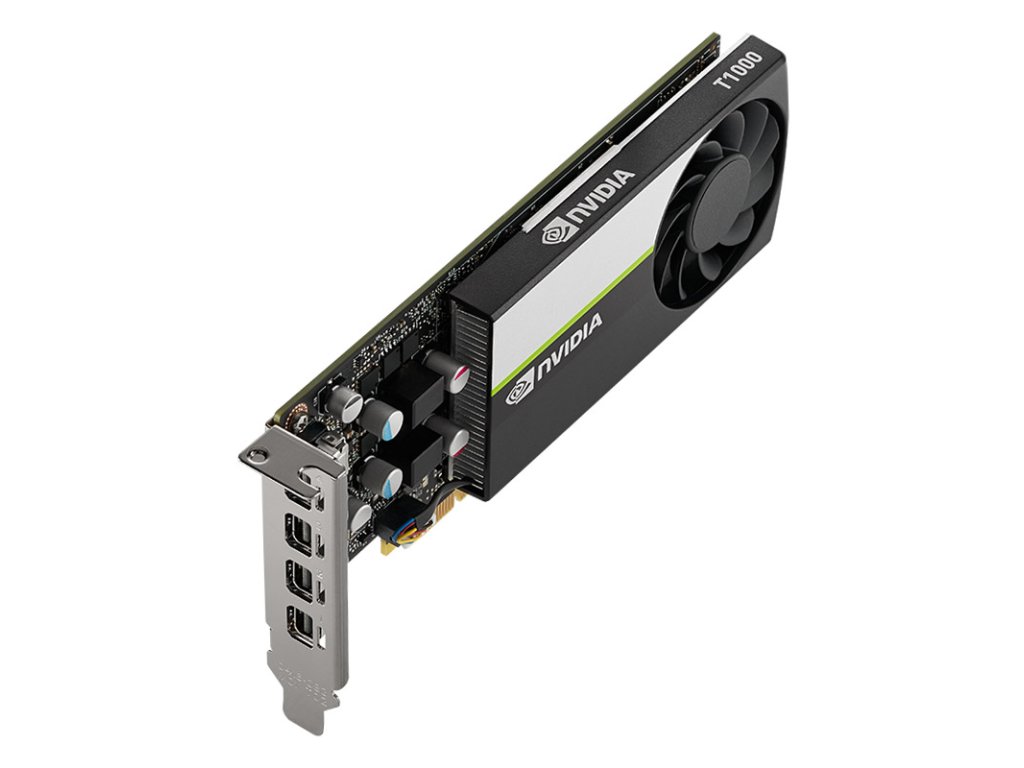 StránkaPNY T1000 ponúka vďaka896 jadier CUDA a jedenŠpičkový výkon FP32 2,5 TFLOPS a4 GB pamäte GDDR6 vynikajúci výkon v širokej škále profesionálnych aplikácií. StránkaGPU pracovnej stanice má celkovoštyri pripojenia Mini-DisplayPort a umožňuje používať viacero monitorov súčasne, čím sa zvyšuje produktivita práce na pracovnej ploche.Súčasťou balenia je nízkoprofilový držiak. Grafická karta je chladená aktívnym axiálnym ventilátorom.