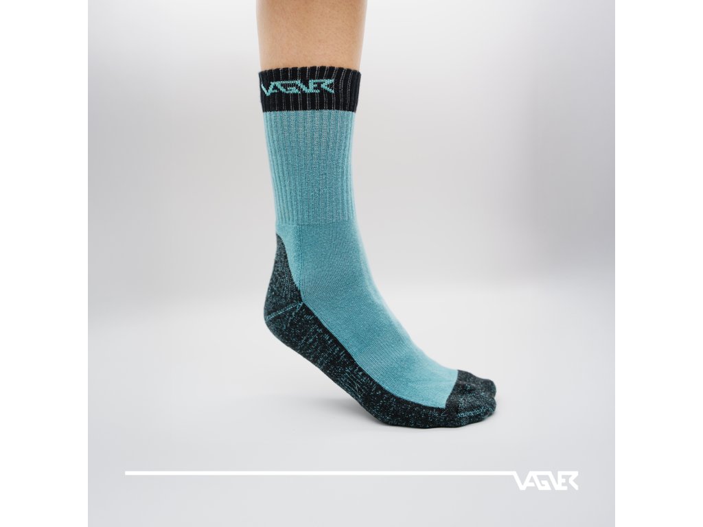 Prodlouženou lýtkovou část, sahající nad úroveň holeňových bot, na svých cestách zaručeně oceníš. Tyhle ponožky zvládnou i náročné túry a chodidla v nich po celou dobu zůstanou skutečně jako v bavlnce. Horní lem navíc zdobí naše logo VAGNER.