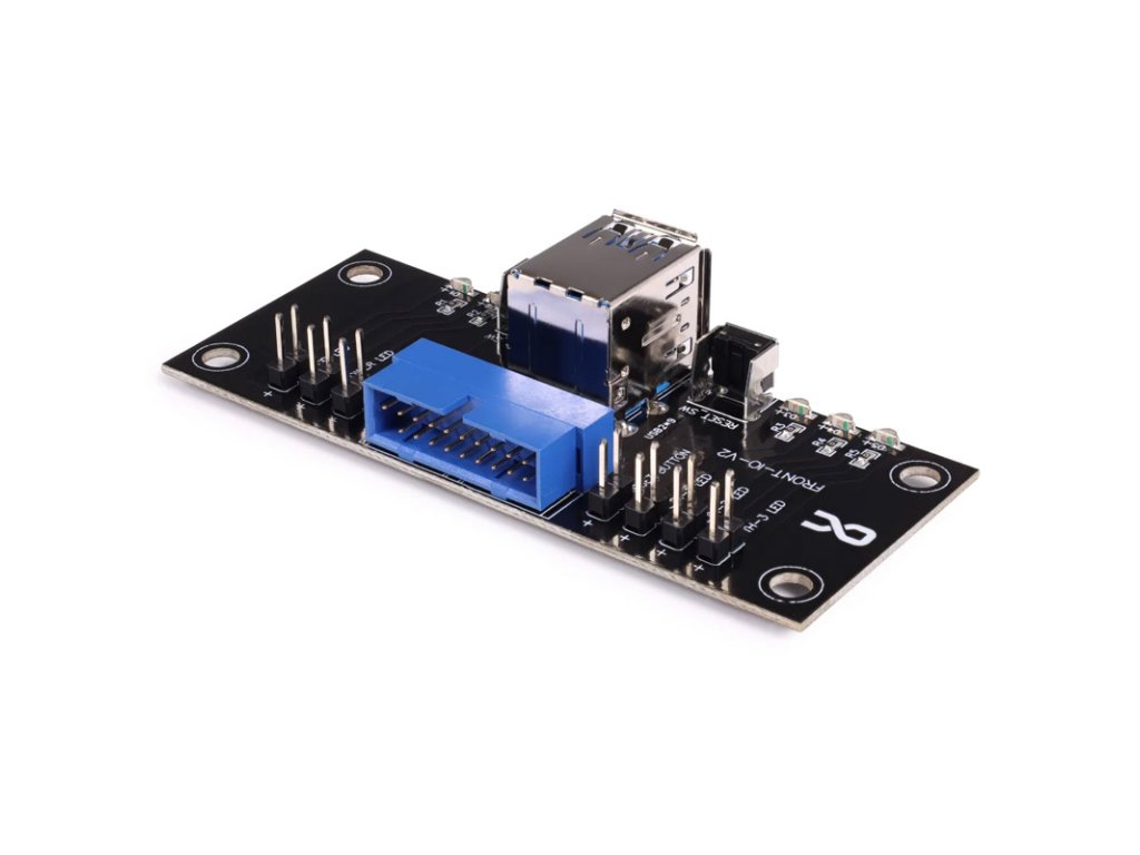 Panel Alphacool Front I/O ES je praktické riešenie na použitie v serverových skrinkách s výškou 1U až 4U. Je vybavený vypínačmi napájania a resetovania a má dve zásuvky USB 3.0, ktoré poskytujú ďalšie možnosti pripojenia. Na paneli sú nainštalované rôzne stavové LED diódy, aby bolo možné efektívne monitorovať funkcie servera. K dispozícii sú tri pripojenia pre sieťové LED, po jednom pre LED pevného disku a napájania a po jednom pripojení pre vypínač napájania a reset. Všetky LED diódy a prepínače sú pripojené prostredníctvom 2-pinových konektorov na doske. Dosku možno upevniť pomocou 4 skrutiek. Montážne otvory majú vnútorný priemer 3,5 mm a sú usporiadané do obdĺžnika s rozstupom 74 mm x 24 mm (merané od stredu).