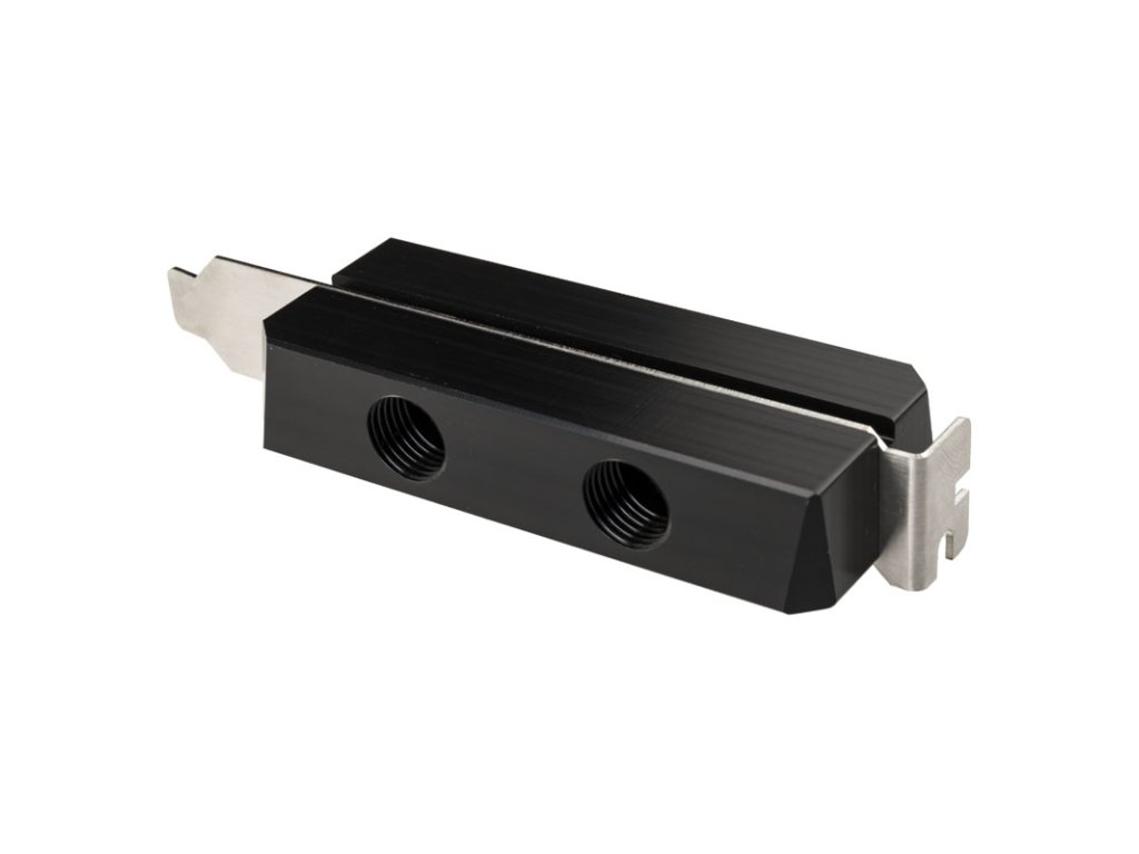 Najmä ak máte externý systém vodného chladenia, zvyčajne máte zásadný problém: kde a ako dostanete hadice do počítača? SDržiak slotu PCI s 2 priechodkami G1/4 od spoločnosti Watercool sa riešenie nájde v priebehu niekoľkých sekúnd a môže sa realizovať najjednoduchším možným spôsobom.Držiak slotu PCI má dve plastové priechodky G1/4 palca s vnútorným závitom a je nainštalovaný v skrinke namiesto nepoužívaného držiaka slotu, čo poskytuje jednoduchý spôsob, ako viesť aj G1/4 palcové hadice/tvrdé rúrky do a zo skrinky. Vhodné O-krúžky sú súčasťou balenia.