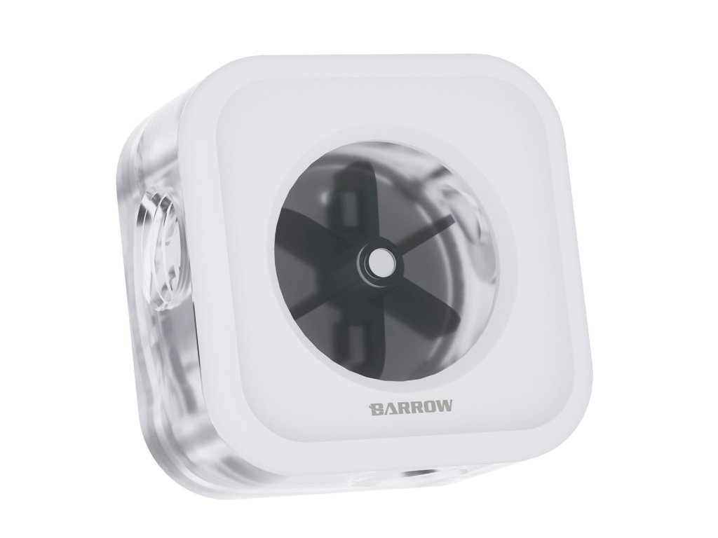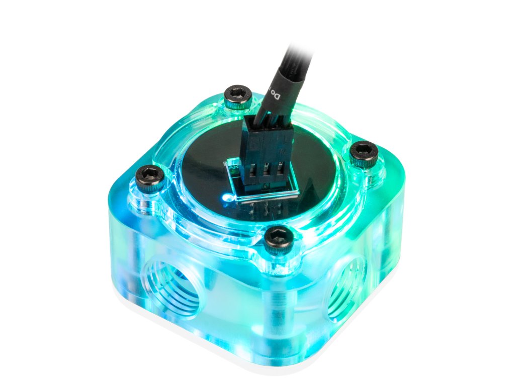 NaPrietokomer Barrow RGB jevizuálny indikátor prietoku. Chladiaca kvapalina prúdi cez indikátor a poháňa lopatkové koleso. Vďaka tomu je možné rýchlo a jednoducho skontrolovať, či je prietok chladiacej kvapaliny normálny, alebo či sú problémy s čerpadlom.