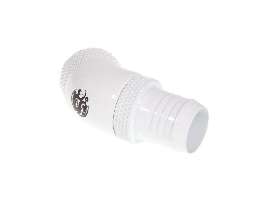 Pripojenie Bitspower 45 stupňov G1/4 palec samec na 13 mm ID - otočné, biele