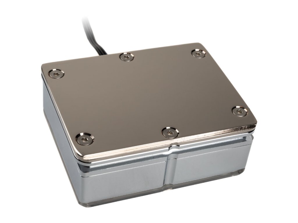 Základňa chladiča vyrobená z mosadze a poniklovanej medi zabezpečuje ideálny prenos tepla a má rozmery 42 x 58,6 milimetra a je vhodná najmä pre výkonné viacjadrové procesory. Stránkašpeciálny rampový systémchladiaci výkon profituje z rovnomernejšej distribúcie vody do základne chladiča v porovnaní s kanálovými chladičmi alebo inými chladičmi s bežnými systémami trysiek. Vďakapriehľadné akrylové veko je možné vidieť vnútro chladiča a kvapalinu, ktorá ním preteká.Veko radiátora je obklopené strieborným rámom, pod ktorým je15 digitálne adresovateľných RGB LED diód sedieť. Pripojenie k základnej doske alebo RGB radiču cez 3-pinový RGB konektor (5VDG, 5V)Alphacool Eisblock XPX Aurora Pro Acrylic Chrome osvetlené širokou škálou farieb a efektov.