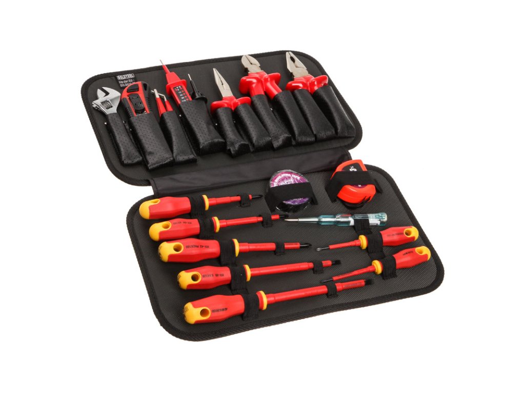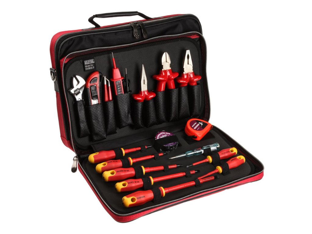 Táto taška na náradie od spoločnosti InLine je ideálnym spoločníkom pre elektromontérov, poskytovateľov služieb, ktorí občas potrebujú vykonať drobné opravy elektrických spotrebičov, alebo pre úpravcov, ktorí sú často na cestách. Červeno-čierna vnútorná taška sa dodáva s popruhom cez rameno a množstvom náradia.Nástroje obsahujú osem rôznych skrutkovačov (drážkové a krížové), tri profesionálne kliešte, anglický kľúč, nôž, meter, skúšačku napätia a dva páry pinziet.