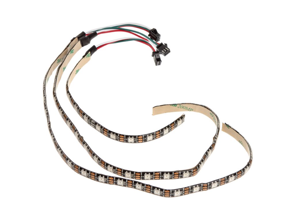 - Tri krátke LED pásy s programovateľnými RGB LED diódami