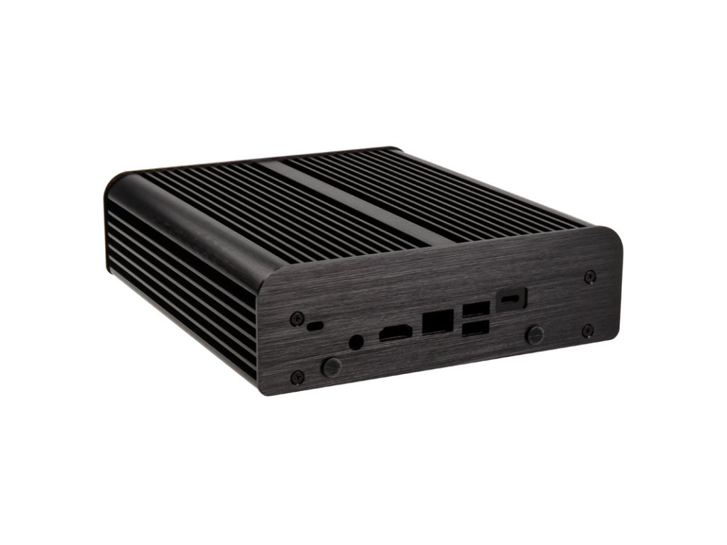 Súčasťou balenia sú podložky na vedenie tepla, ktoré zabezpečujú ideálny prenos tepla. Okrem toho sú súčasťou balenia montážne skrutky VESA, skrutky do základnej dosky, gumové nožičky a všetky potrebné káble a príslušenstvo na uvedenie minisystému do prevádzky (externý napájací zdroj je potrebné zakúpiť samostatne!) a jeho montáž na miesto VESA. Odpadové teplo sa potom cez chladiacu dosku rovnomerne dostáva do krytu a cez rebrovanie sa uvoľňuje do okolitého vzduchu - absolútne ticho!