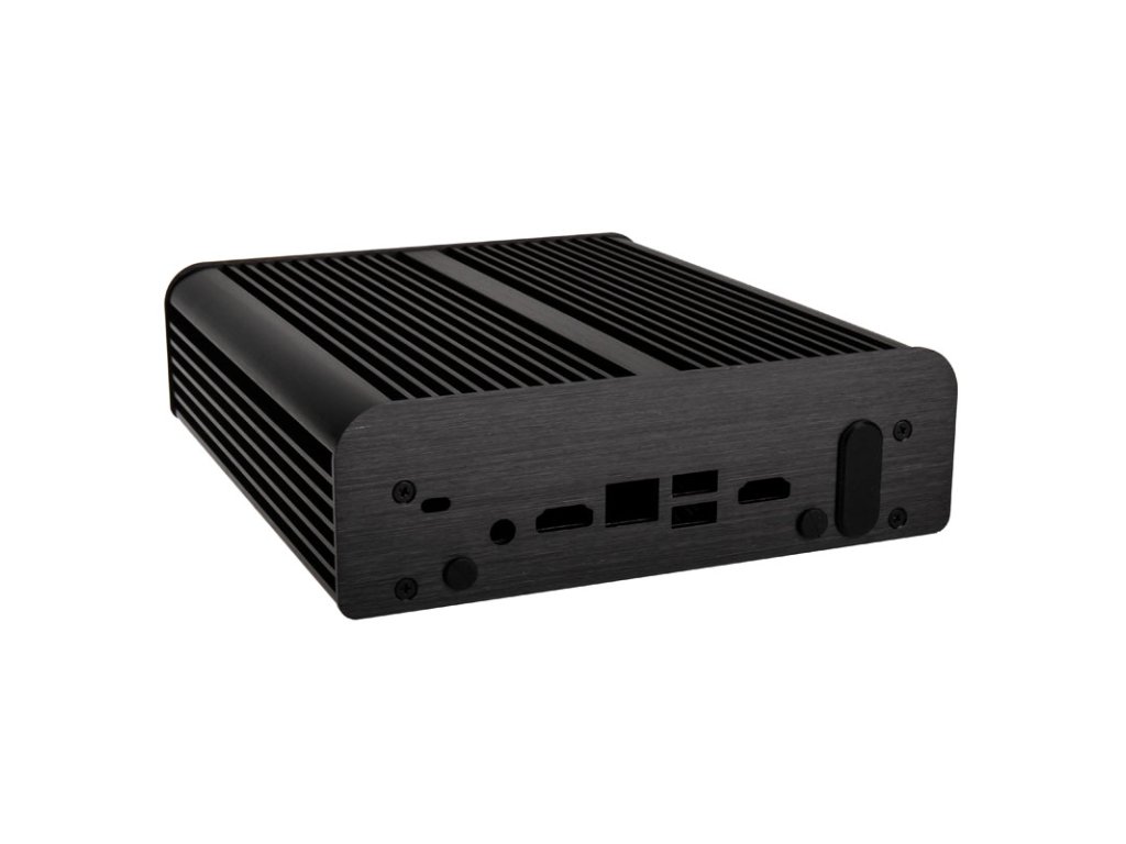 Súčasťou balenia sú podložky na vedenie tepla, ktoré zabezpečujú ideálny prenos tepla. Okrem toho sú súčasťou balenia montážne skrutky VESA, skrutky do základnej dosky, gumové nožičky a všetky potrebné káble a príslušenstvo na uvedenie minisystému do prevádzky (externý napájací zdroj je potrebné zakúpiť samostatne!) a jeho montáž na miesto VESA. Odpadové teplo sa potom cez chladiacu dosku rovnomerne dostáva do krytu a cez rebrovanie sa uvoľňuje do okolitého vzduchu - absolútne ticho!