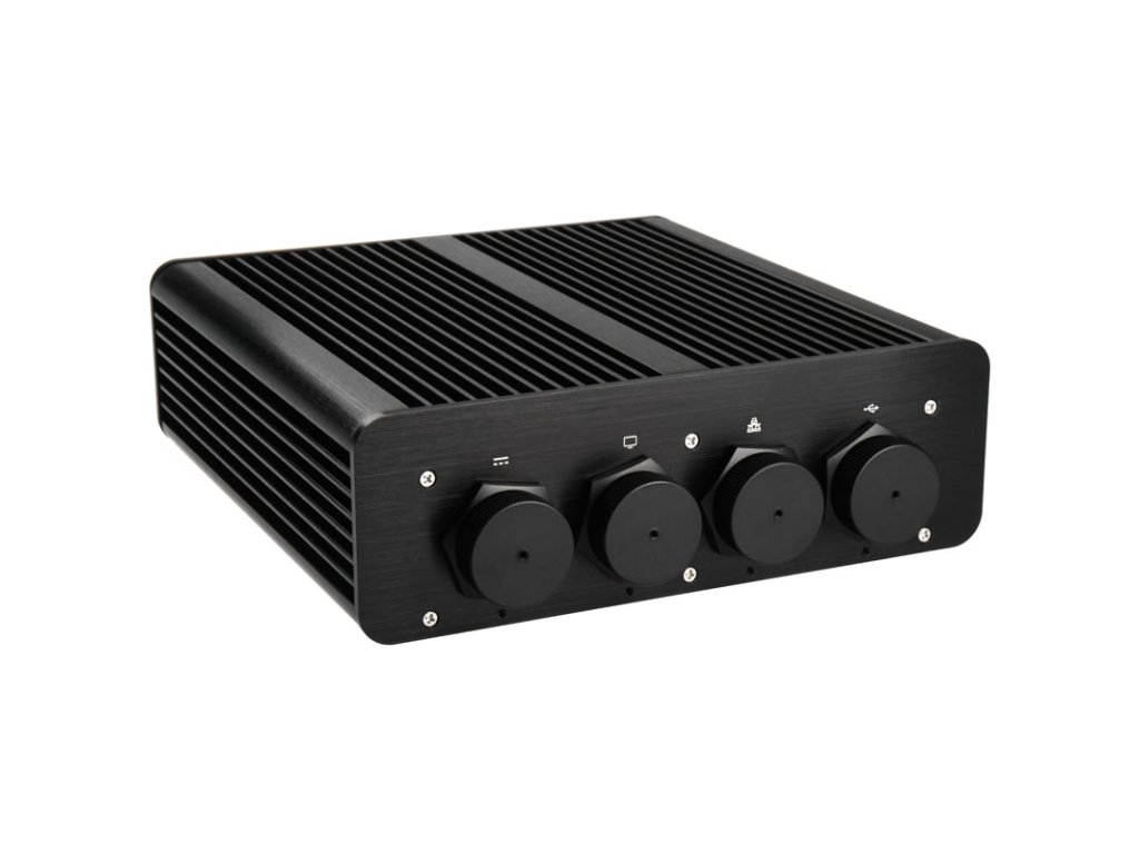 Horné a vonkajšie okraje sú takmer úplne pokryté hliníkovými chladiacimi rebrami. To znamená, že samotná skriňa zabezpečuje chladenie a zaobíde sa úplne bez ventilátora. To znamená, žeSystém UCFF pracuje vAkasa Pascal MD úplne bezhlučné. Na dosiahnutie tohto cieľa prichádza procesor do priameho kontaktu so špeciálnymi kontaktnými plochami krytu. Odpadové teplo potom rovnomerne prechádza cez dosky chladiča do stien krytu a cez rebrá sa uvoľňuje do okolia - úplne nehlučne!Tepelná pasta a tepelné podložky sú súčasťou balenia na zabezpečenie ideálneho prenosu tepla. Okrem toho sú súčasťou balenia aj skrutky do základnej dosky, všetky ostatné potrebné montážne materiály a vodotesný krytHDMI, USB 2.0/3.0 a sieťový kábel a v neposlednom rade je súčasťou balenia aj vodotesné predĺženie dutej zástrčky.