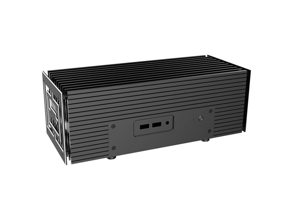 StránkaAkasa Turing AC Pro je plne vybavený hliníkovými chladiacimi rebrami. Procesor a skrinka sú v priamom kontakte prostredníctvom chladiacej dosky so 6 mm medenou heatpipe. To umožňujesamotný kryt funguje ako obrovský pasívny chladič. Odpadové teplo z procesora sa rovnomerne rozvádza doTuring Fanless a vypúšťané do okolitého vzduchu cez veľkú žalúziovú konštrukciu: absolútne bez ventilátora a bez hluku!