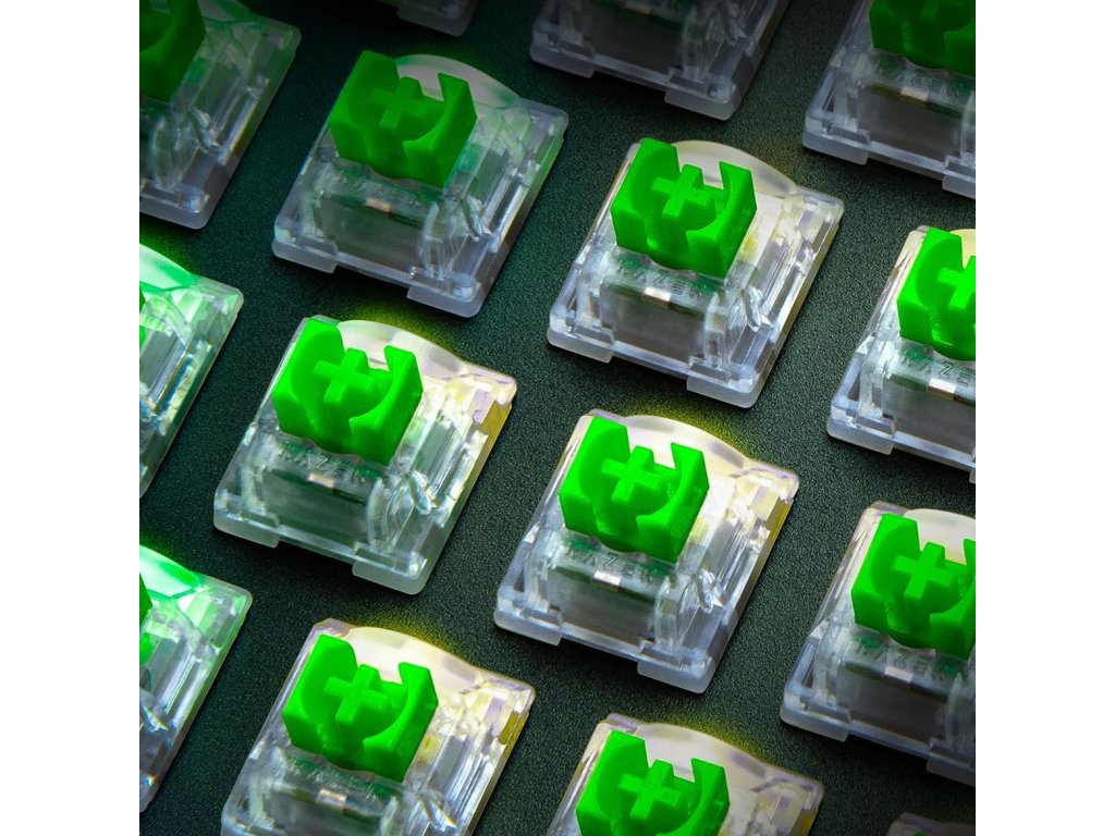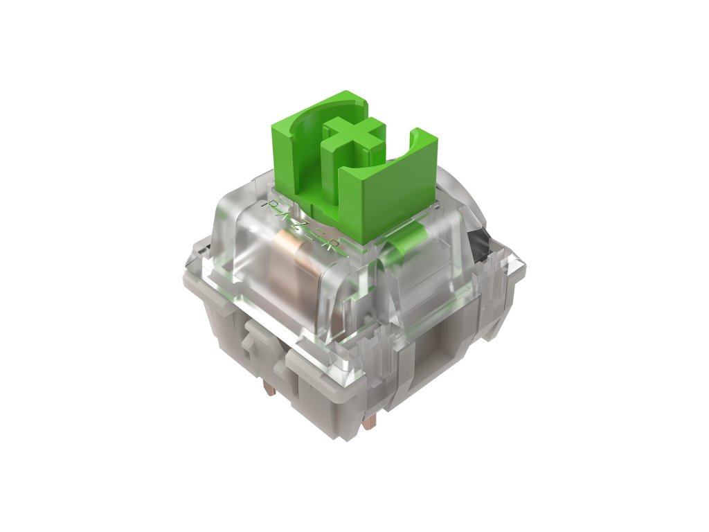 StránkaZelené prepínače Razer sú hmatové tlačidlové spínače a vyznačujú saveľmi presný, vnímateľný tlakový bod vypnuté. Po stlačení tlačidla vstúpite dopočuteľný zvuk kliknutia sama o sebe. To z nich robí vynikajúcu voľbu pre častých pisateľov. S jehonízky uvoľňovací tlak sú však vhodné aj na rýchle a akčné hry, kde audio-haptická spätná väzba pomáha udržať kontrolu. Vďakarobustná konštrukcia s dvojitou stenou spínače sú tiež mimoriadne stabilné a odolné.