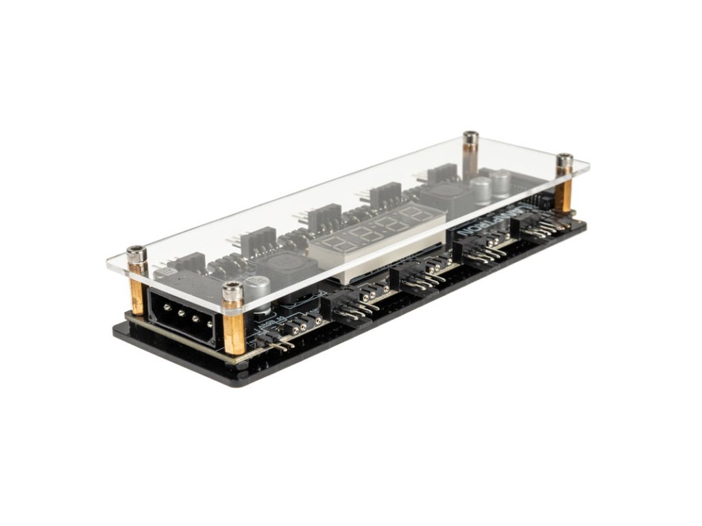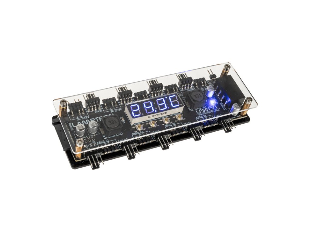 Kompatibilné sú 3-pinové aj 4-pinové ventilátory, ako aj prvky ARGB s 3-pinovým pripojením RGB. Integrovaný ukazovateľ teploty vám umožňuje presne sledovať teplotu vo vašej skrini.