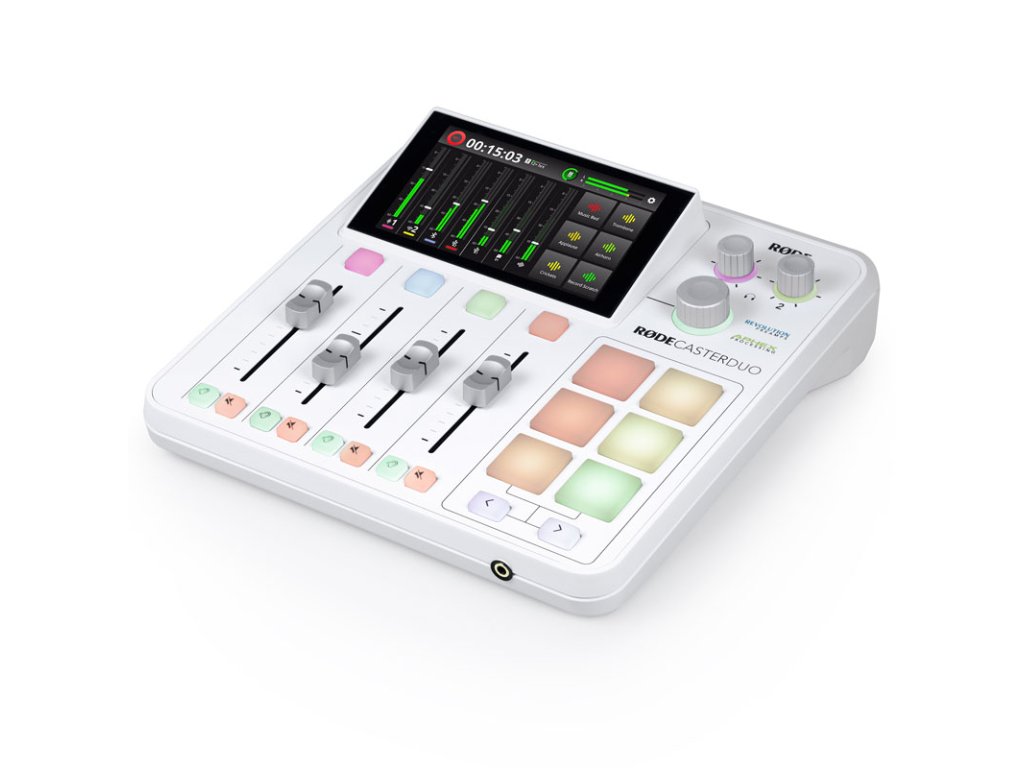 Pre profesionálnych podcasterov a hudobníkov jeRode Rodecaster Duo White Edition vyvinuté. Ponúka plnohodnotné zvukové štúdio v kompaktnom formáte so siedmimi kanálmi, ktoré možno pripojiť ktakmer akýkoľvek mikrofón alebo nástroj možno pripojiť. Stránkanízkošumové predzosilňovače Revolution a spracovanie signálu Aphex zabezpečiť, aby boli hlasy alebo nástroje zaznamenané krištáľovo čisto. Celkom šiestim SMART padom s prepínaním bánk možno priradiť jingle alebo sample.