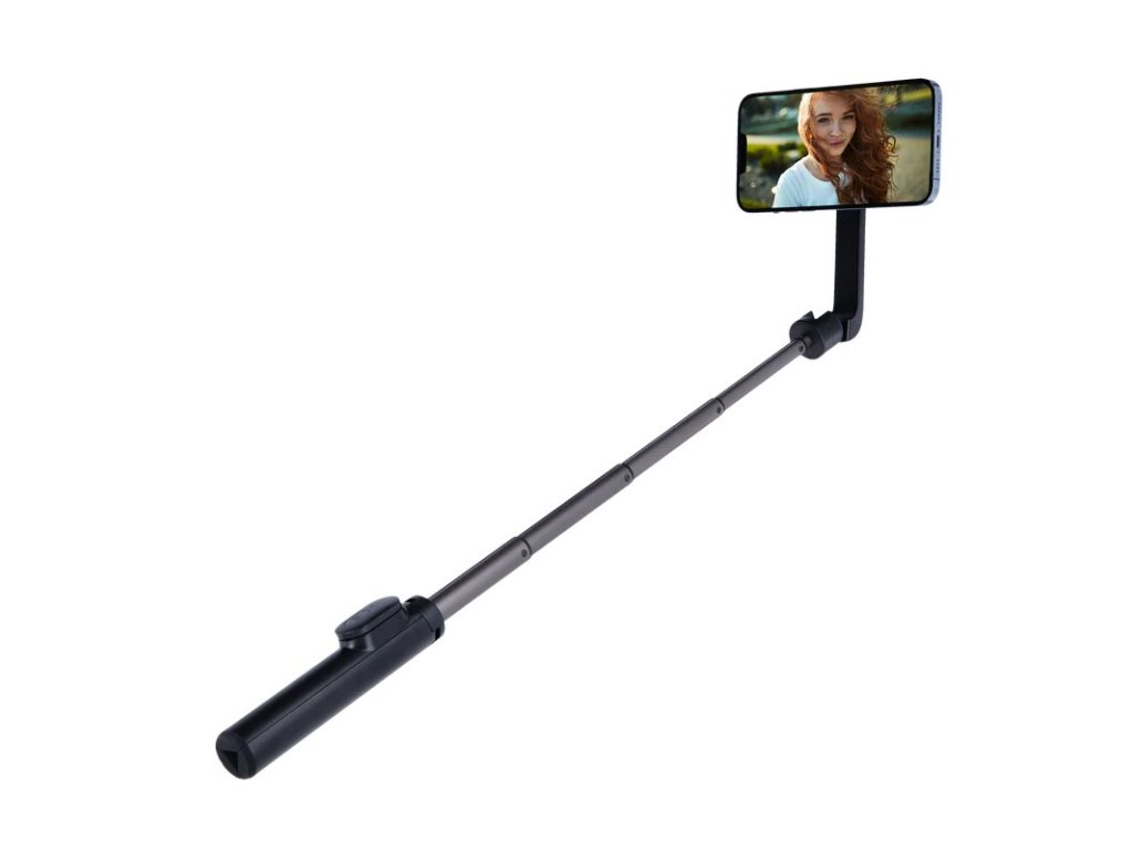 Všestranný magnetický selfie stativ s rozmanitými možnostmi použití kombinuje funkce mini stativu a selfie tyče pro dokonalý záběr v každé situaci. Jako stativ nabízí nastavitelnou výšku 29 až 64,3 cm, což je ideální pro skupinové fotografie, fotografování krajiny nebo videozáznamy s pevnou polohou. Po změně na selfie tyč nabízí nastavitelnou délku 30,6 až 73 cm. Flexibilní výklopný držák smartphonu s konektorem MagSafe umožňuje rychlé a bezpečné upevnění smartphonu s magnetickou zadní stranou. Samozřejmostí je možnost optimální orientace telefonu na výšku i na šířku. Noha stativu má navíc integrovaný magnet pro udržení Bluetooth dálkového ovládání, které lze v případě potřeby vyjmout a pohodlně pořizovat fotografie a videa na dálku.
