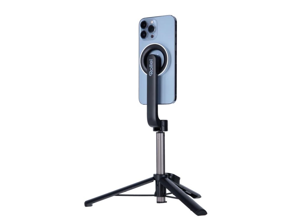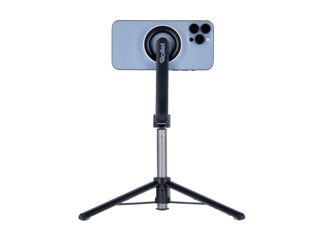 Ovladač lez vyjmout a pomocí Bluetooth pohodlně fotografovat nebo natáčet na dálku. Magnetický stativ Rollei se vyznačuje kompaktními rozměry a nízkou hmotností, díky čemuž se snadno přenáší a je ideálním příslušenstvím na cesty. Současně je dostatečně pevný a robustní, aby častá mobilita nevedla k poškození.
