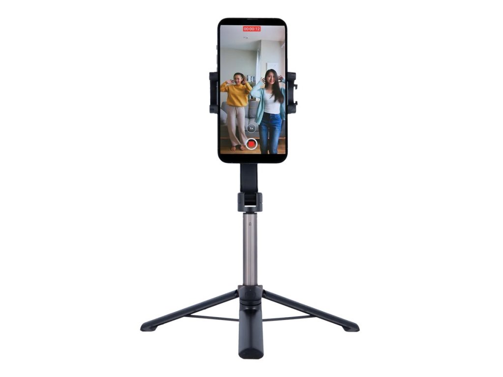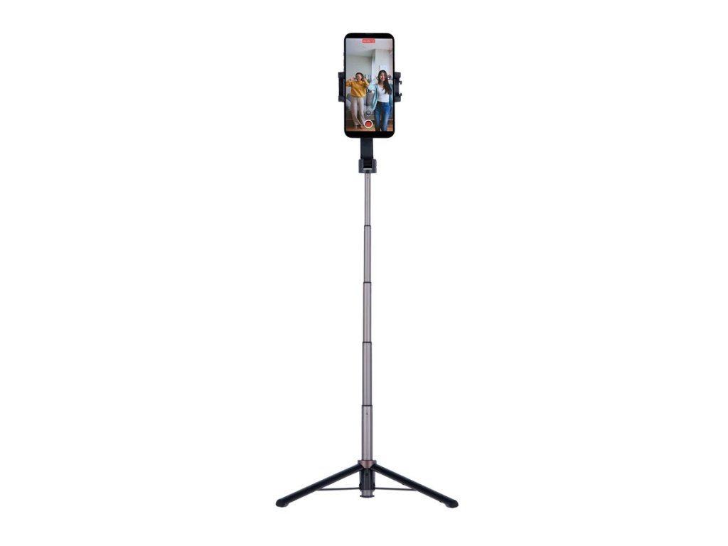 Všestranný selfie stativ s rozmanitými možnostmi použití kombinuje funkce mini stativu a selfie tyče pro dokonalý záběr v každé situaci. Jako stativ nabízí nastavitelnou výšku 28,5 až 65,6 cm, což je ideální pro skupinové fotografie, fotografování krajiny nebo videozáznamy s pevnou polohou. Po změně na selfie tyč nabízí nastavitelnou délku 29,9 až 74,2 cm. Samozřejmostí je možnost optimální orientace telefonu na výšku i na šířku. Noha stativu má navíc integrovaný magnet pro udržení Bluetooth dálkového ovládání, které lze v případě potřeby vyjmout a pohodlně pořizovat fotografie a videa na dálku.