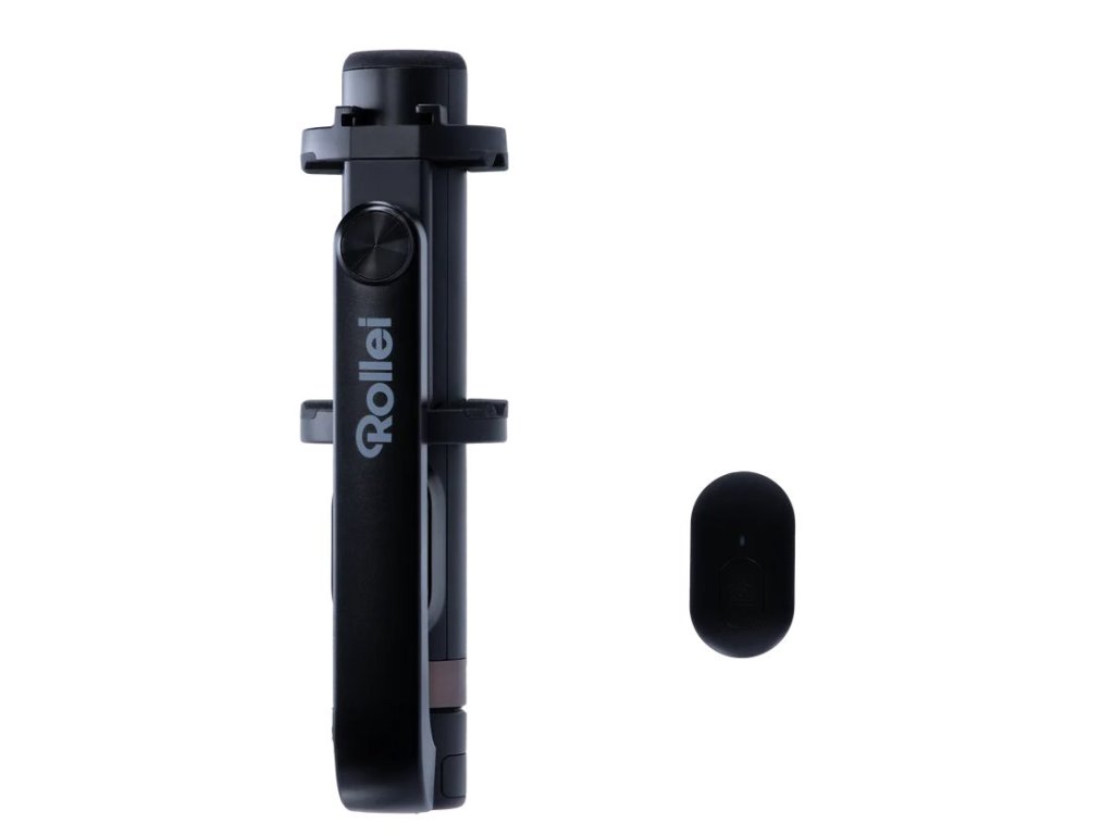 Rollei Smartphone selfie tripod je vybaven výklopným otočným držákem, do které bezpečně uchytíte smartphone a rázem můžete fotografovat nebo nahrávat jak ve formátu na výšku, tak na šířku. V noze stativu je zabudovaný magnet pro dálkové ovládání. Ovladač lez vyjmout a pomocí Bluetooth pohodlně fotografovat nebo natáčet na dálku.