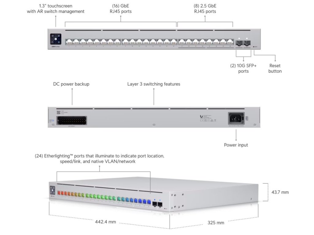 Ubiquiti UniFi Switch Pro Max 24UniFi Switch (USW-Pro-Max-24) je ideální pro malé a střední firmy, které požadují spolehlivý L3 switch s managementem v profesionálním provedení určený pro montáž do racku 1U.